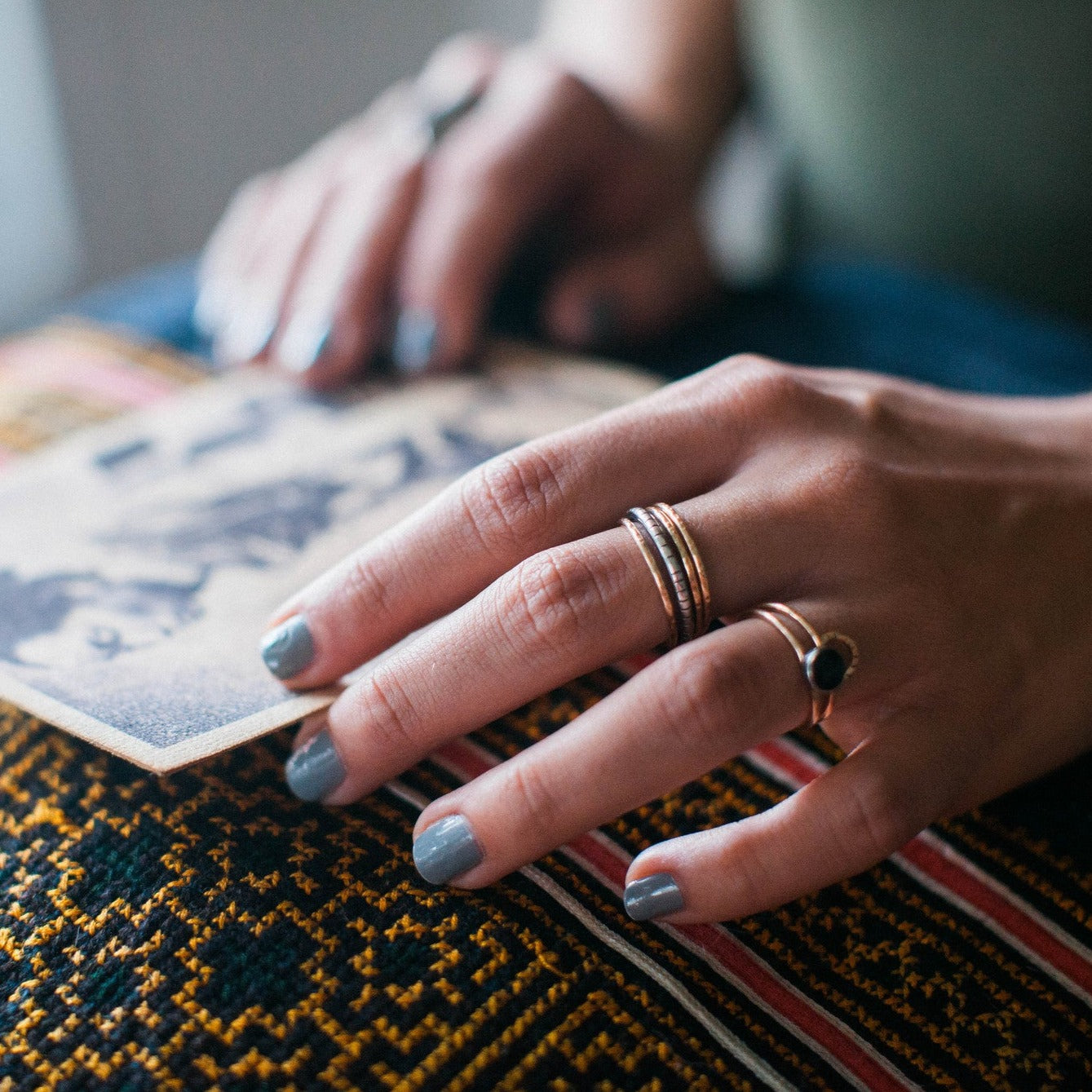 The name Hiran means 'silver or gold' in Sanskrit. The Hiran ring is an elegant combination of oxidized sterling silver and 14k gold-filled. The lines are unique and approachable making this another great everyday ring.