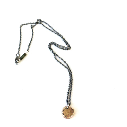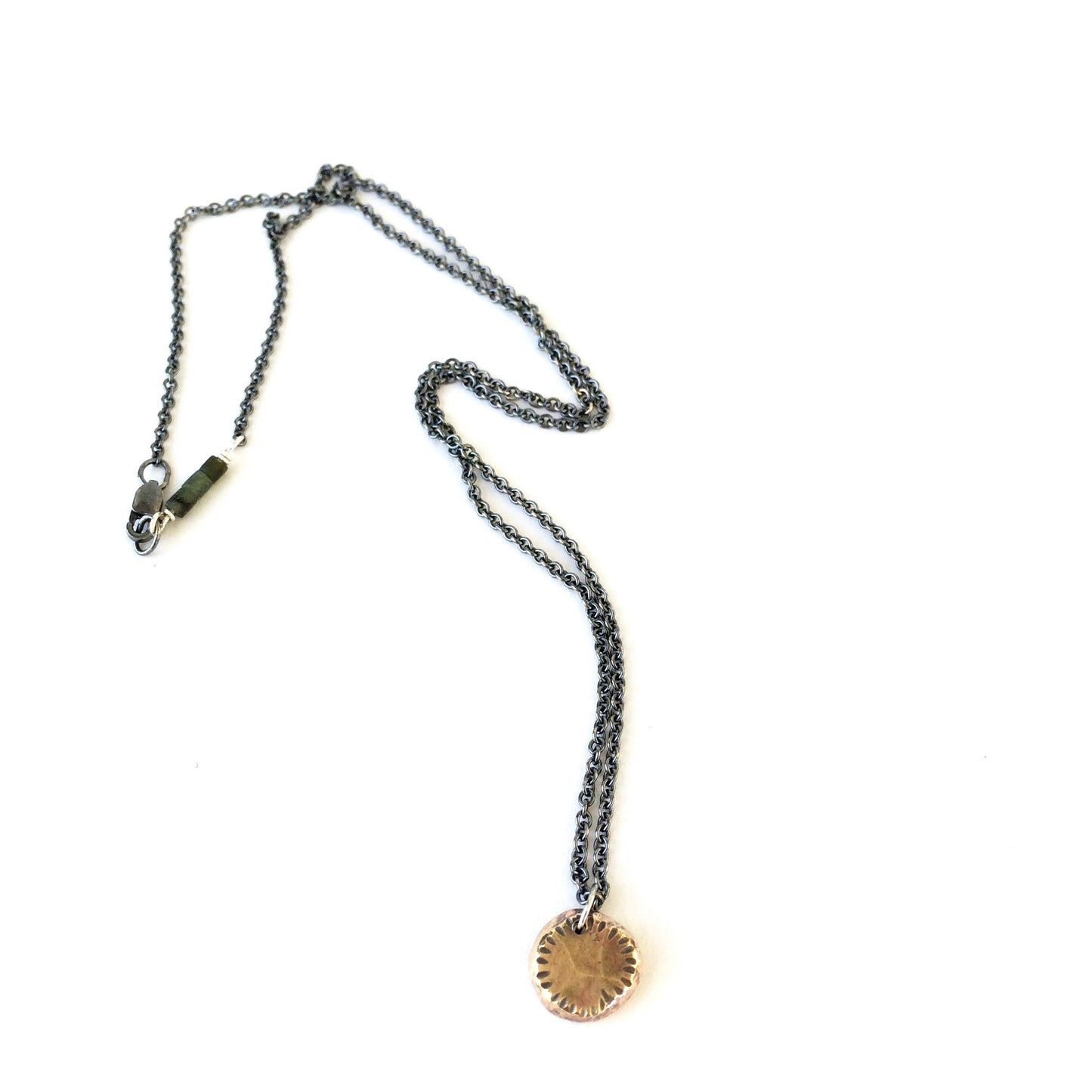 This little antique bronze pendant fabulously captures the spirit & energy of a Mexican marigold flower. Marigolds grow abundantly in Mexico and are the predominant flower used in Day of the Dead celebrations. It is believed that the spirits of the dead visit the living during these festivities and the marigolds, with their scent and vibrant color, help guide the spirits to their altars.