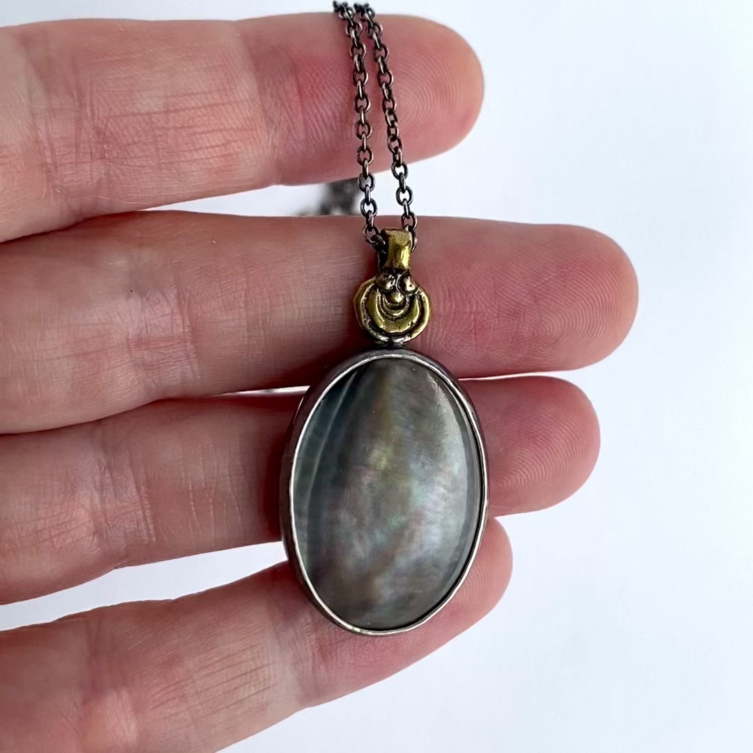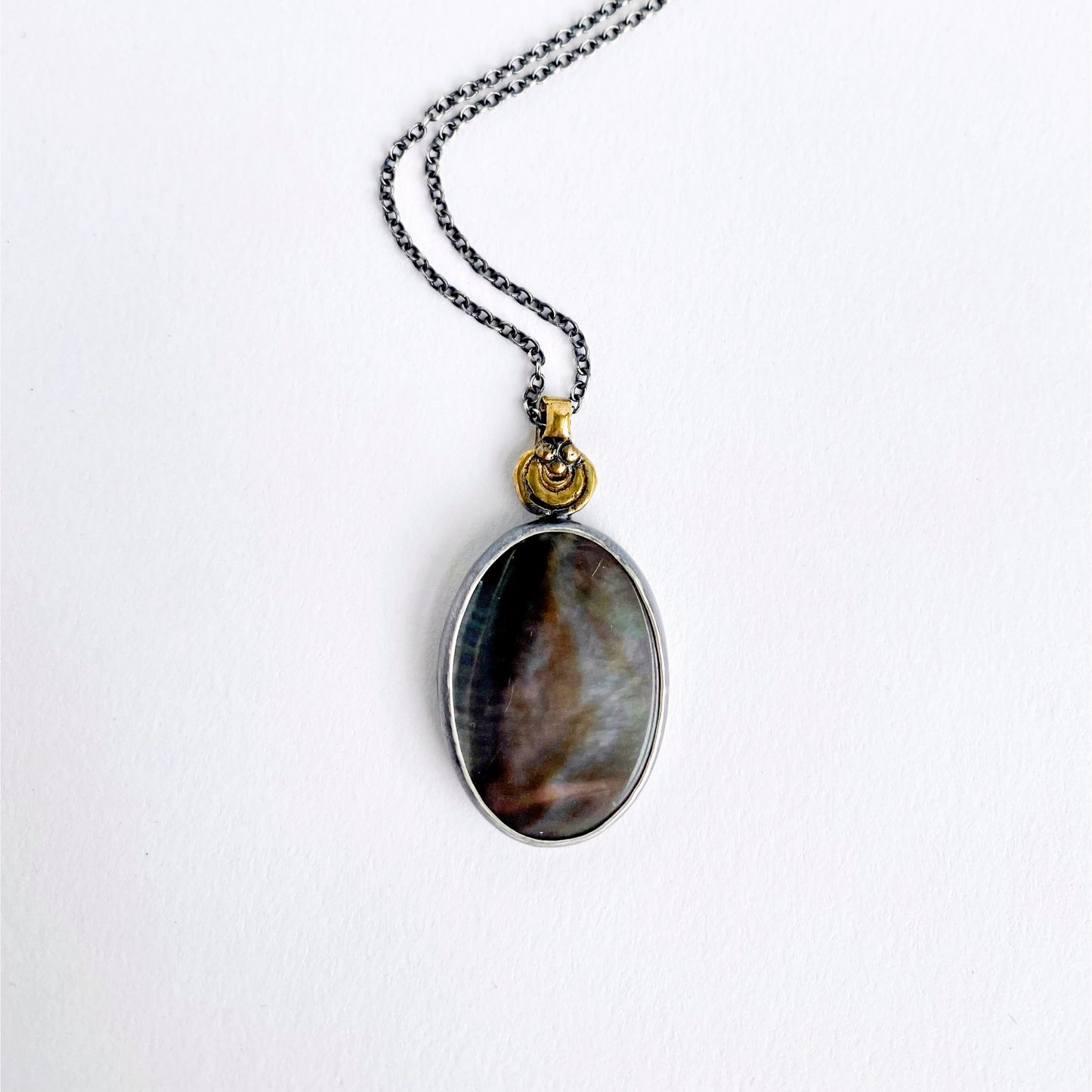 - Oxidized sterling silver adjustable chain, wear at 18” or 20”