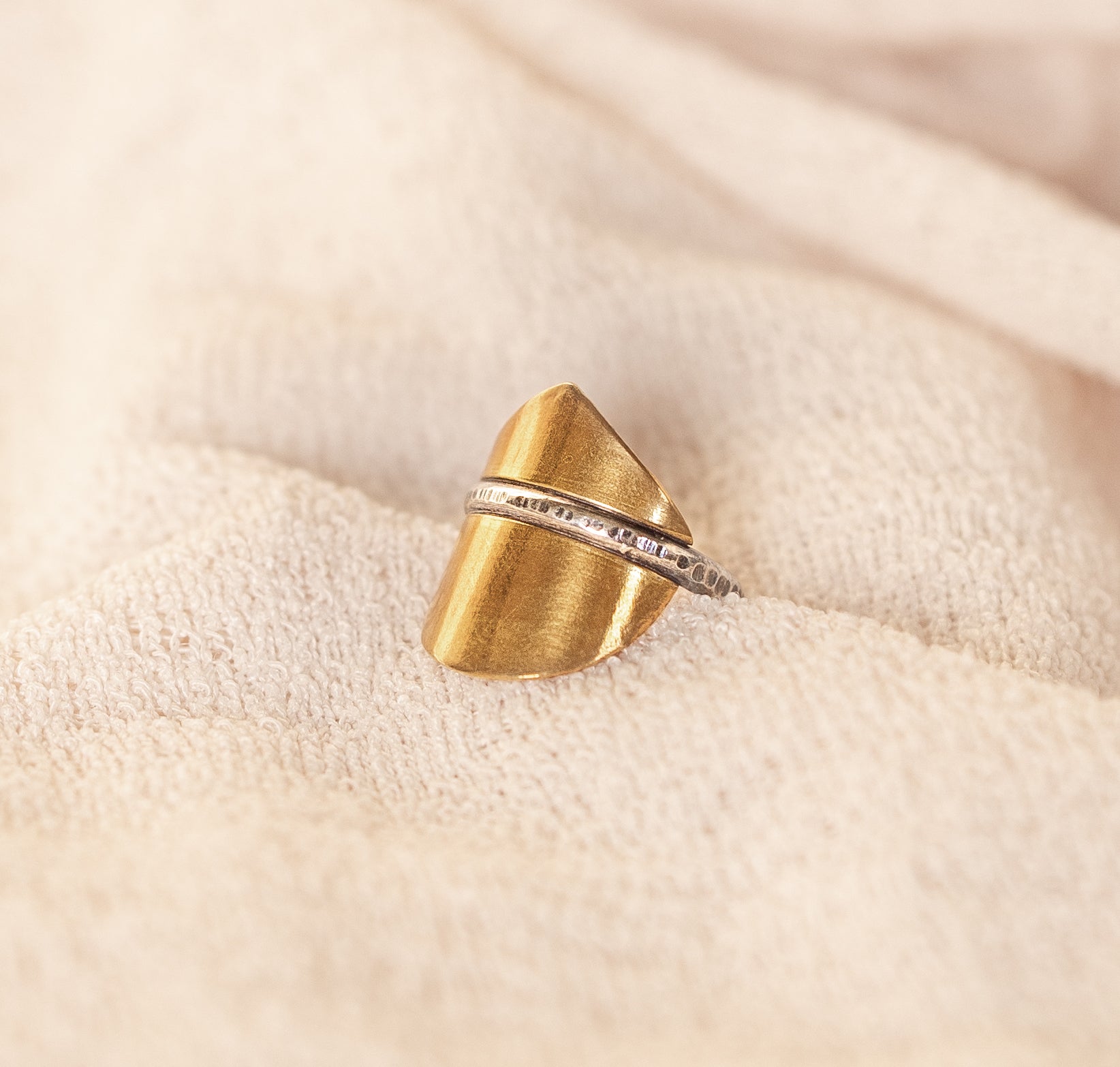 The Shield Ring was designed after an affinity for amulets. Amulets are charged with good energy and when worn, protect the wearer from harm. Its low-profile, geometric design combined with its ancient artifact spirit make this ring a favorite CSB design!