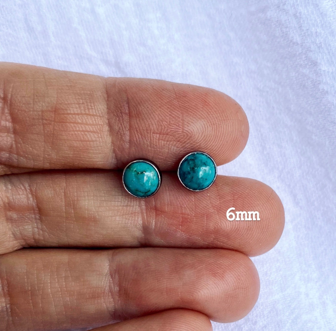 These studs are made with beautiful 8mm turquoise stones which are set in a sterling silver bezel with sterling silver ear posts.